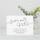 Salve nossa data, cartão de anúncio de casamento, em design de caligrafia minimalista moderna temática.