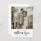 casámo-nos. Foto personalizada moderna com design de script de pincel preto na moda. Design de imagem e mensagem personalizadas.