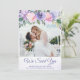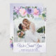 Cartão de noiva floral, roxo e cor-de-água rosa, moderno, com um fundo texturizado muito leve de lavagem peri. Personalize nomes, datas e informações.