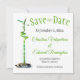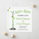 Envie este anúncio de casamento quadrado "Save The Date" com data, apresentando um caule de bambu da sorte espiralado na frente com detalhes do texto. O canto superior esquerdo do verso tem dois caules de bambu entrelaçados e folhas no canto inferior direito. Personalize o texto nos campos do modelo ou clique em personalizar para selecionar um estilo de letra, tamanho e cor de sua preferência.