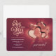 O Anúncio de Casamento Save The Date (Versão 2) da Multiform apresenta uma elegante disposição de corações tridimensionais radiantes em um fundo de raios de luz. Este design moderno pode ser facilmente personalizado com suas informações, incluindo data da cerimônia, horário, local e site de lista de casamento.