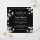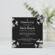 Este cartão de Celebração de Vida elegante apresenta delicadas flores silvestres brancas contra um fundo preto dramático, exalando um senso de estilo e feminilidade. Serve como uma bela homenagem para honrar uma vida repleta de amor e memórias queridas.