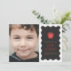 Celebre a formatura da pré-escola do seu filho com este moderno e encantador anúncio de graduação. A frente do cartão apresenta uma ilustração doce de uma maçã em meio-tom com uma sobreposição de texto "Turma de (Ano)". Abaixo da ilustração está a mensagem "a menina dos nossos olhos", bem como espaço para o nome do seu filho e da escola dele. O texto e o design são colocados sobre um fundo preto sólido, com uma borda de moldura ondulada branca e divertida. Este anúncio também inclui espaço para uma grande foto do cliente. A parte de trás do cartão apresenta um padrão de maçã em meio-tom coordenado.
