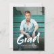 Anúncio de Conclusão de Curso com letra de pincel moderna com 4 fotos, simples e único. Personalize com suas próprias fotos e informações da festa de graduação.
