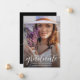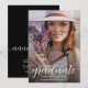 Este elegante anúncio de conclusão de curso apresenta sua foto na frente, juntamente com seu nome, escola e a palavra graduado em letras elegantes.
