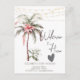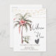 Palmeira em aquarela com flor tropical e luzes de corda.
