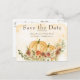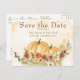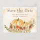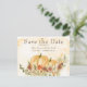 Cartão de anúncio de data de casamento com aquarela rústica em tons de outono, fonte dourada e marrom, burgundy, cores de outono.