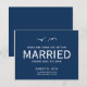 Uma ilustração moderna de duas pombas do amor voando sobre as ondas do oceano cria uma linda papelaria de casamento para complementar sua celebração romântica à beira-mar. Mais cores disponíveis. Cores personalizadas disponíveis mediante solicitação.com