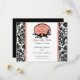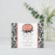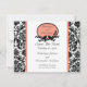 Anuncie seu futuro casamento com nossos cartões de anúncio de data de casamento com um belo padrão damasco preto e branco com um acabamento coral e uma moldura oval com 2 pássaros e galhos. Basta adicionar as informações do seu casamento e você estará pronto! Selos postais e selos de envelope correspondentes disponíveis em nossa loja
