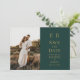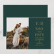 Anuncie seu dia especial com elegância usando nosso convite de data de emergência com foto personalizada e monograma em verde esmeralda. Este cartão orientado para a paisagem apresenta um monograma elegante, uma foto à esquerda e texto à direita contra um fundo de verde esmeralda suave. Seu design simples, porém sofisticado, define o tom para a sua celebração futura.