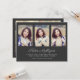 segundo grau de 4 fotos ou placa plana do formandos. Adicione 3 fotos à frente e 1 à parte traseira. Personalize com seu nome, nome da escola, ano de graduação e informações de graduação futuras. Termine com uma nota que seu convite formal seguirá. Estas cartas são perfeitas para amigos e familiares que precisarão planejar vários meses antes para sua formatura. Dá-lhes a oportunidade de marcar os seus calendários e, se necessário, de fazer arranjos viagem. Personalize também a cor de fundo desta placa.