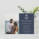 Este Anúncio de Data de Salvamento de Foto Monograma Náutico vem com um design de texto simples, uma âncora náutica simples para os monogramas do noivo e da noiva em uma caixa moderna delineada esperando pela sua foto e detalhes do casamento para personalizar. Cores adicionais disponíveis com este design. Perfeito para casais que estão tendo um casamento à beira-mar.