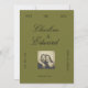 Um cartão de anúncio de data com estilo inspirado no vintage, apresentando um fundo verde oliva rico, tipografia de roteiro clássico e um layout de foto personalizável. Acentuado com tons de borgonha profundos, este design elegante é perfeito para casais que planejam um casamento clássico, romântico ou moderno. Personalize nomes, data, local e foto para anunciar seu dia especial com charme e sofisticação.