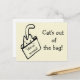 Esta design adorável mostra um desenho simples infantil de um gato espreitando o topo de uma bolsa e dizendo, Cat está fora da bolsa, Nós nos movemos. O texto pode ser alterado para o ajustado das suas necessidades e você pode escolher sua cor de fundo favorita. #newaddress #changeofaddress