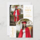 O Anúncio de Graduação Dourada em Foto Moderna apresenta três das suas fotos favoritas do seu formando, com o ano de aula, o nome do formando e a escola, universidade ou universidade, grau, qualificação ou planos futuros com a camada moderna de roteiro de caligrafia em ouro "Formando". No reverso, adicione sua mensagem personalizada. Simples, na moda e elegante. Criado por ©2025 Evco Studio www.zazzle.com/store/evcostudio