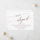 Estes elegantes cartões de anúncio de elopemento de ouro rosa têm um belo e simples design. A design cor-de-rosa-pincelada apresenta uma carta minimalista decorada com tipografia da folha de ouro rosa-falso romântica e caprichosa. O cartão diz "Nós Eloped". Personalize a placa com os detalhes do seu casamento e use a seção modelo na parte traseira para obter informações de recepção, para anunciar uma mudança de endereço ou para quaisquer outros detalhes que você gostaria de compartilhar. Nota: Este design não apresenta folha de ouro rosa real. É um gráfico de alta qualidade feito para se parecer com folha de ouro rosa.