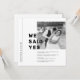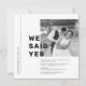 Este cartão moderno em preto e branco é ótimo para fazer anúncios de casamento. Ele apresenta letras 'Nós dissemos Sim', nomes dos recém-casados, anúncio de elopement e convite para a festa pós-elopement. O modelo é totalmente editável, basta adicionar a foto do casal e substituir o texto.