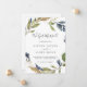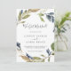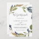 Estes cartões de anúncio de elopemento verde de outono têm um belo design de outono. A design moderna rústica apresenta folhas azuis marinhos, verdes-sábios e douradas com espirros de flores azuis escuras. Personalize a placa com os detalhes do seu casamento e use a seção modelo na parte traseira para obter informações de recepção, para anunciar uma mudança de endereço ou para quaisquer outros detalhes que você gostaria de compartilhar.