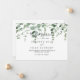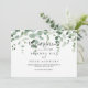 Este anúncio minimalista do eucalipto verde tem um belo design moderno. A design apresenta galhos e folhas botânicas elegantes e desenhadas a aquarela e desenhadas à mão. Personalize a placa com os detalhes do seu casamento e use a modelo na parte traseira para anunciar uma alteração de endereço, informações de recepção ou quaisquer outros detalhes que você gostaria de compartilhar.
