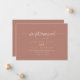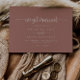 Este anúncio do elopemento do terracotta da caligrafia tem um belo design rústico. O design simples e elegante apresenta a tipografia de scripts clássicos e de rico. Personalize a placa com os detalhes do seu casamento e use a modelo na parte traseira para anunciar uma alteração de endereço, informações de recepção ou quaisquer outros detalhes que você gostaria de compartilhar.