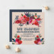 Belo cartão de elopemento para compartilhar suas notícias. Um design floral vermelho e rosa vibrante inclui penas azuis marinhos. São as penas que lhe dão uma vibração Boho. A parte traseira do cartão é azul marinho para combinar as penas. Eloped está escrito em uma grande fonte decorativa aberta para mantê-lo arejado e leve. Seus nomes estão abaixo em uma fonte marinho em negrito. Então, sua história de elopeamento. Fácil de personalizar e bonito de olhar.