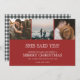 Anuncie seu noivado recente com este cartão de Natal vermelho "Ela disse sim!", apresentando três das suas fotos de noivado. Personalize o modelo com suas fotos (corte em formato quadrado antes de fazer o upload para obter os melhores resultados). A frente deste cartão de Natal de anúncio de noivado diz - Ela disse sim! Desejando à nossa família e amigos um Feliz Natal e um ano novo feliz e saudável. Personalize a parte inferior do cartão com seus nomes. O verso do cartão tem um design xadrez de búfalo preto e branco. Entre em contato através do botão abaixo se precisar de ajuda ou personalização adicional.