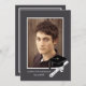 Comemore as conquistas de seu aluno de graduação com este moderno cartão de convite para a graduação do anúncio de fotos, com um retrato de graduação de sua escolha, enquadrado por uma simples cinza e uma fronteira branca, e embelezado com um boné de formatura e um diploma que você pode personalizar com o ano de graduação. Personalize as costas com os detalhes da celebração e as informações de contato.