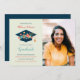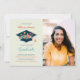 Este anúncio festivo de graduação apresenta um boné de formatura com flores coloridas. Inclui uma foto do formando. Esta design moderna é excelente de celebrar um formando do Segundo grau ou da Faculdade.