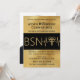 Convite de Anúncio de Formatura de Enfermagem BSN RN LPN Dourado. Folha dourada falsa e símbolo médico caduceu com linha de batimentos cardíacos. Funciona como convite de festa de formatura ou anúncio de formatura. Foto no verso é opcional. Adicione um nome, grau de enfermagem, detalhes do ano da "turma de" a este convite de festa de formatura elegante com tema preto e dourado falso. Tipografia de caligrafia moderna e sofisticada com linha de batimentos cardíacos e símbolo do caduceu da área de saúde - que também pode ser excluído ou alterado para seu próprio gráfico. Perfeito também para cerimônias de entrega de insígnias de enfermagem! Procure por suprimentos e decorações para festa e enfeite de boina de formatura correspondentes nesta coleção da loja.