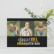 O estilo contemporâneo e uma combinação de cores divertidas fazem deste anúncio de graduação ou convite uma escolha de excelente para um formando moderno. Em tons de cinza e ouro sobre um fundo preto clássico, três fotos preenchem a frente onde a ousada tipografia anuncia a formatura do seu filho. Um design totalmente único para um tipo de formando.