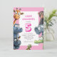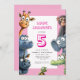 Embarque numa emocionante aventura zoológica com este anúncio de festa divertida! Esta vibrante design apresenta uma série deliciosa de animais de zoo fofos e esquisitos, todos reunidos para celebrar uma ocasião especial. O alegre fundo cor-de-rosa melhora o humor festivo, fazer uma escolha fantástica para a festa de aniversário de uma criança, especialmente para um 5 de aniversário. Este anúncio certamente fará com que todos se entusiasmem por um dia cheio de diversão, jogos e festividades temáticas na selva. Torne o aniversário do seu filho mais especial com este charmoso e atraente design.