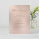 Lindo convite de casamento com efeito de folha de ouro rosa criado digitalmente "Fomos Embora". Basta adicionar os detalhes do seu casamento na área do modelo acima à direita, ou se precisar de alterações adicionais, clique no botão "Personalizar" acima. Perfeito para qualquer tema de festa de casamento! Por favor, note que estes são convites impressos planos - a folha de ouro rosa é simplesmente uma imagem de alta qualidade do nosso próprio design.