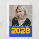 Anúncio de Graduação de Fita Amarela Azul e Dourada - Colagem de Fotos de 5 Fotos de Lado Duplo - Inclui Envelopes Cinza Leve Fundo do Quadro