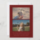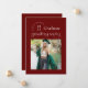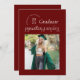 Este anúncio de graduação moderno apresenta uma fotografia quadrada de solteiro sobre fundo vermelho escuro e tipografia de tendência com o nome da escola e o ano de graduação dando a impressão de um carimbo e o nome do formando destacado de forma muito moderna e moderna, refletindo de ponta cabeça as outras informações de graduação. A parte de trás do anúncio de graduação inclui duas fotografias, perfeita para incluir uma foto de infância, e um ponto para uma mensagem mais longa, excelente para destacar as realizações do formando ou planos futuros.