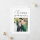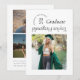Este moderno anúncio de graduação apresenta uma fotografia quadrada de solteiro e uma tipografia de tendência com o nome da escola e o ano de graduação dando a impressão de um selo e o nome do formando destacado de forma moderna e moderna, refletindo de cabeça para baixo as outras informações de graduação. A parte de trás do anúncio de graduação inclui duas fotografias, perfeita para incluir uma foto de infância, e um ponto para uma mensagem mais longa, excelente para destacar as realizações do formando ou planos futuros.