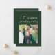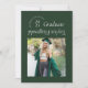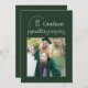 Este moderno anúncio de graduação apresenta uma fotografia quadrada de solteiro sobre um fundo verde escuro e uma tipografia de tendência, com o nome da escola e o ano de graduação dando a impressão de um carimbo e o nome dos formandos destacado de forma muito moderna e moderna, refletindo de cabeça para baixo as outras informações de graduação. A parte de trás do anúncio de graduação inclui duas fotografias, perfeita para incluir uma foto de infância, e um ponto para uma mensagem mais longa, excelente para destacar as realizações do formando ou planos futuros.