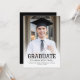 Anúncio de graduação com fotos personalizadas na frente e no verso. A palavra "Formando" aparece em uma tipografia negra ousada, com um olhar esportivo ideal para o atleta estudantil, com o nome do formando, a escola e o ano de graduação abaixo em sans serif. A parte traseira apresenta uma foto horizontal, com espaço para detalhes sobre a conquista do seu formando e planos futuros em texto dourado sobre fundo preto. Uma boa escolha para segundo grau ou formandos.