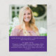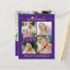 Um anúncio de graduação em ouro, roxo e roxo, econômico, impresso em papel leve de 4,5x5,6", em vez de cartazes com falso desenho metálico de letras de ouro tipografia e boné de formatura e personalizado com 5 fotos (uma colagem de fotos de 4 fotos na frente e 1 na parte traseira) contra uma cor de fundo roxo editável que você pode mudar para uma cor de escola ou cor favorita. O ano de aula é editável por outros anos. O verso apresenta uma foto de sangria de cheio e um campo de texto opcional para o seu texto personalizado com detalhes sobre o seu formando. Ideal para orçamentos conservadores e/ou entrega manual. Envelopes vendidos separadamente na página de pedidos. ASSISTÊNCIA: Para obter ajuda sobre modificação/personalização do design, alteração de cor, transferência do design para outro produto ou se você quiser coordenar itens, entre em contato com o designer ANTES DE PEDIR por meio do Zazzle Chat ou makeitaboutyoustore@gmail.com.