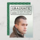 Cartão de anúncio de graduação de fotos moderno com os detalhes do formando dentro de uma grade. A placa tem um padrão de listras brancas em relação a uma cor de fundo editável (clique em personalizar para alterar) no lado traseiro. Personalize-o substituindo o texto do marcador de posição e substitua a foto do marcador de amostra/marcador de posição por sua própria foto. Para obter mais opções, como alterar a fonte e seu tamanho/cor ou o espaçamento entre letras, clique no botão "Personalizar". *Observe que a Marca d'água do Zazzle que aparece na visualização de zoom NÃO aparecerá no produto impresso final. © Rosewood e Citrus