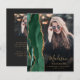 Este anúncio de graduação de 2025 apresenta uma borda geodórica de agata de cor d'água em tons de verde esmeralda com realces falsos de brilho dourado. O primeiro nome do formando aparece como uma camada elegante de escrita manual dourada em uma foto vertical, juntamente com o sobrenome, a escola e o ano de aula em letra de impressão. Um filtro de gradiente preto ajuda o pop de texto. Uma segunda foto horizontal aparece no verso, juntamente com o anúncio e os detalhes em texto dourado sobre fundo preto escuro.