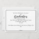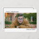 Um design minimalista com uma fotografia horizontal centrada de borda a borda com texto personalizável de nome de formando acima e ano de classe abaixo. A parte de trás está bem definida com o convite dos pais, a graduação em roteiro, depois os detalhes da graduação de localização, tempo, etc, enquadrado por uma fina estrutura de linha preta.