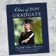 Anúncio de formandos azul-escuro e econômico com a foto do formando, seu nome e ano de aula em uma escritura branca elegante e sua universidade, grande e honraria na tipografia branca moderna.