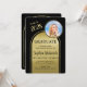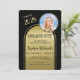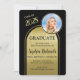 Este anúncio elegante de Festa de formatura apresenta um arco duplo com letras negras contra um fundo de ouro escovado e uma sala para uma foto da honra desta ocasião especial. A parte traseira do cartão tem espaço para três fotos adicionais. Muito para personalizar para se adequar à sua honra. Qualquer pergunta sobre design, basta enviar um chat ou um e-mail para charmdesignstudio@rcn.com e teremos todo o prazer em ajudar. Contacte-nos também se pretender que a cor de fundo seja alterada para uma cor escolar ou para uma cor favorita.