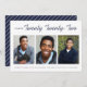 Este anúncio de graduação moderno apresenta 3 modelos de fotos e tipografia de na moda. A cor do texto e do plano de fundo na parte traseira da placa pode ser personalizada para qualquer cor desejada (mostrada em azul marinho).