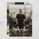 Celebre a formatura com um cartão de foto personalizado feito especialmente para ele. Este anúncio de formatura com monograma editável apresenta as iniciais do formando em um design arrojado, uma foto frontal completa e um layout de colagem de fotos flexível no verso para mostrar seus retratos de formatura.