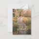 Adicione sua foto favorita, anúncio de formatura e convite para festa no verso clicando no botão "Personalizar". Apresenta uma foto vertical em quadro completo com a palavra "graduado" em roteiro em negrito.