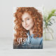 Anuncie sua formatura aos seus amigos e familiares com este anúncio de formatura com foto que inclui texto com fonte moderna com destaques em caligrafia soletrando a palavra grad. Personalize com o ano da sua turma, nome e escola e envie uma foto vertical no lugar da foto de amostra mostrada no modelo de design. O verso deste anúncio tem um design abstrato sutil. Você pode adicionar texto adicional no verso, se desejar, escolhendo "personalizar ainda mais" na parte inferior do modelo de design.