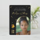 Anuncie o marco do graduado com um estilo mágico com este cartão de graduação Afro Unicórnio, apresentando um deslumbrante unicórnio dourado com uma juba dourada, simbolizando força e individualidade. Contra um fundo preto elegante com acentos de diamantes dourados cintilantes, este cartão apresenta a frase empoderadora “Inteligente. Forte. Brilhante.” e a mensagem “Nosso Unicórnio está se Graduando”. Personalize com o nome do graduado, foto, nome da escola e ano de conclusão para criar um presente significativo e elegante. Perfeito para enviar por correio para amigos e familiares ou combinar com presentes.