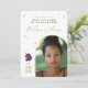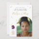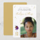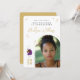 Celebre a força e o brilho do seu graduado com este elegante cartão de foto de formatura Afro Unicorn, apresentando um fundo branco radiante com detalhes de diamantes dourados e um gráfico de unicórnio poderoso com uma juba roxa e um chifre cor de arco-íris. Destacado pela mensagem “Nosso Unicórnio está se Graduando” e “Inteligente. Forte. Brilhante.”, este cartão é personalizado com o nome do graduado, escola, ano de turma e foto. Uma maneira linda e empoderadora de compartilhar este grande marco com familiares e amigos, este design de recordação é perfeito para enviar pelo correio ou exibir.