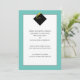 Anúncios clássicos de formatura para a turma de graduados de 2025 com elegante gorro preto e borla dourada em fundo azul-teal.